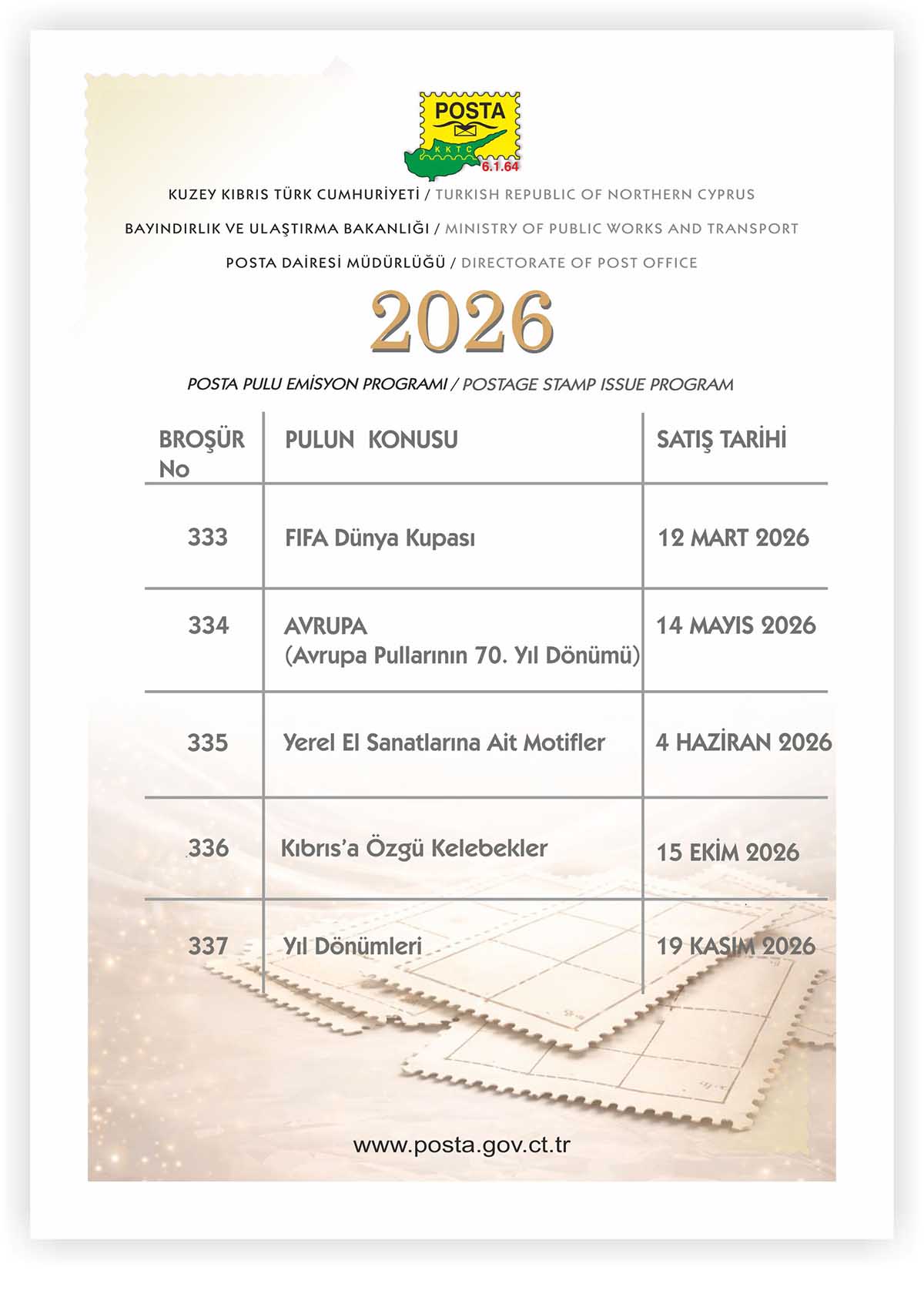 2026 Yılı Posta Pulu Emisyon Programı / 2026 Postage Stamp Issue Program